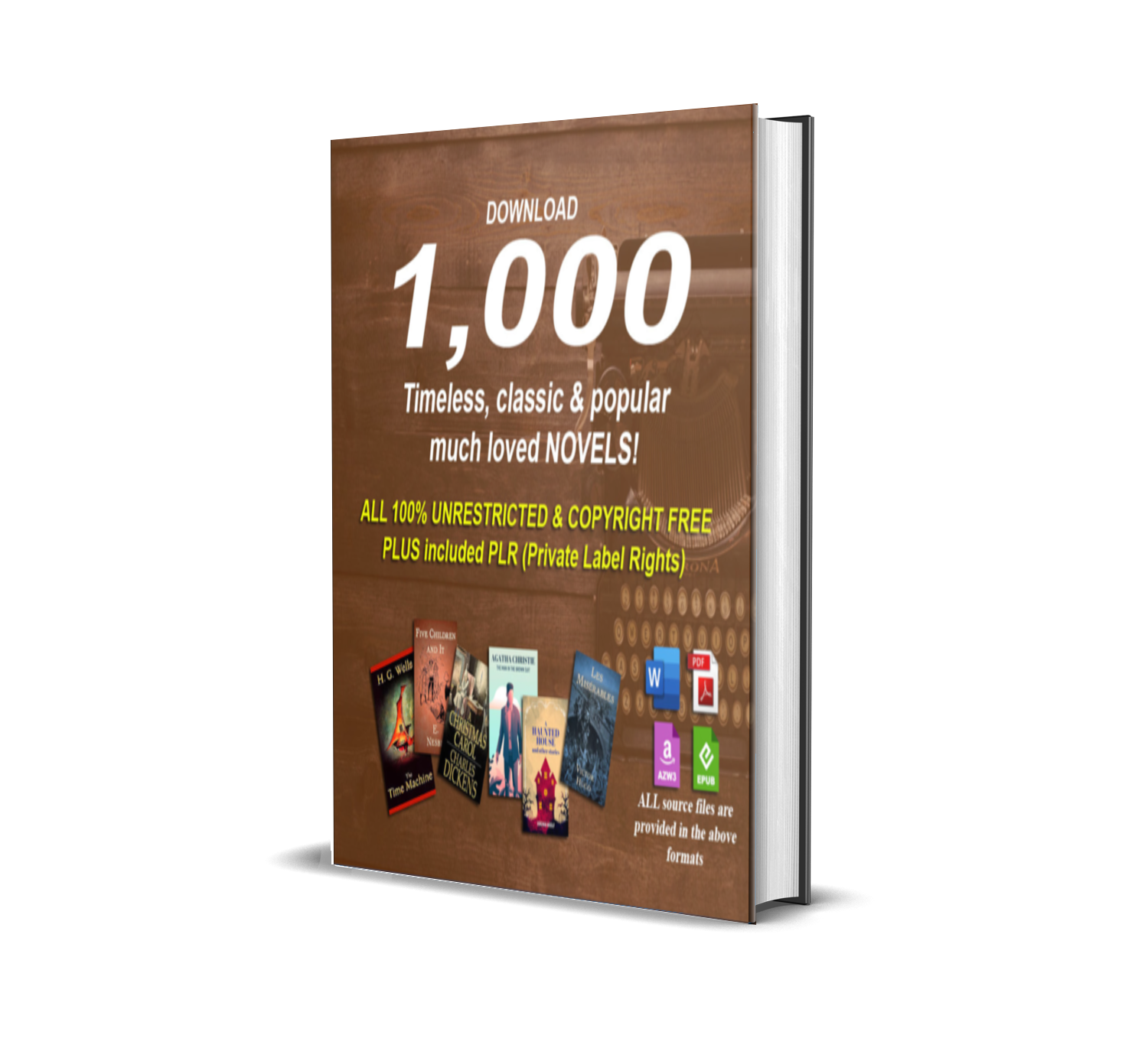 Get instant access to 1,000 timeless classic novels in multiple genres – fully editable, 100% copyright-free, and with full PLR rights. Re-brand, resell, or re-purpose them into endless profitable formats!